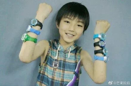 小时候的王俊凯,有很多表。他说自己是普通家庭,但是表一个手杆戴不下,于是从手腕绑到了自己的手臂。