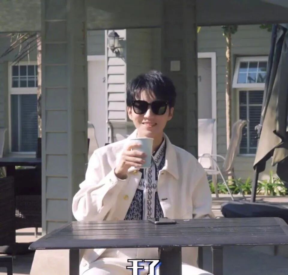 本来戴墨镜已经够拽了。接下来,王俊凯还给自己加戏,端起了一杯水,一副朕很欣慰的表情说,“干了”。