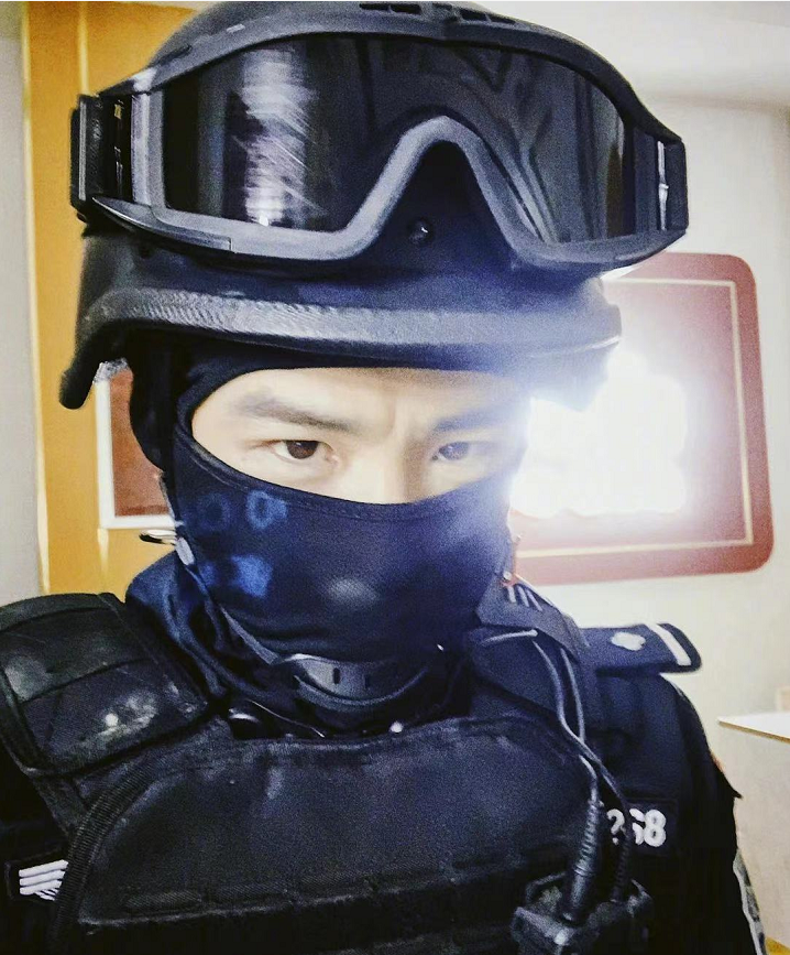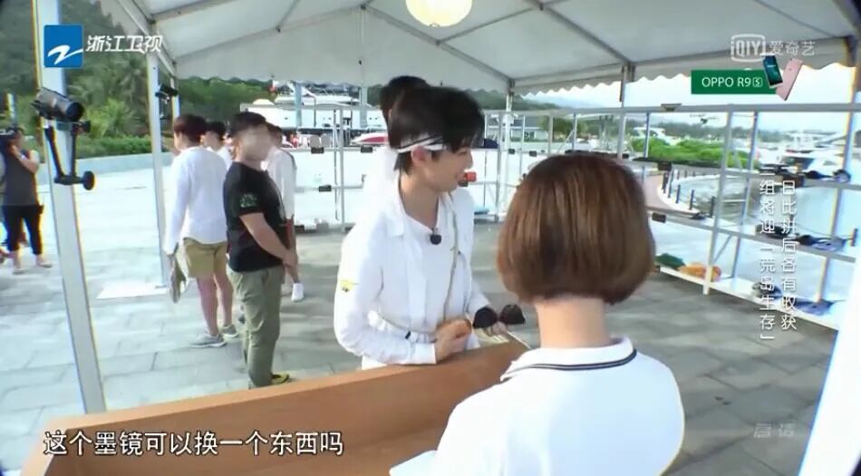 别人都没有墨镜可以换,只有他把墨镜挂在了身上。