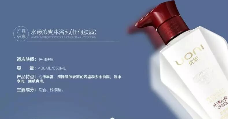 优妮·水漾沁爽沐浴乳,祝你肌肤永远18岁!