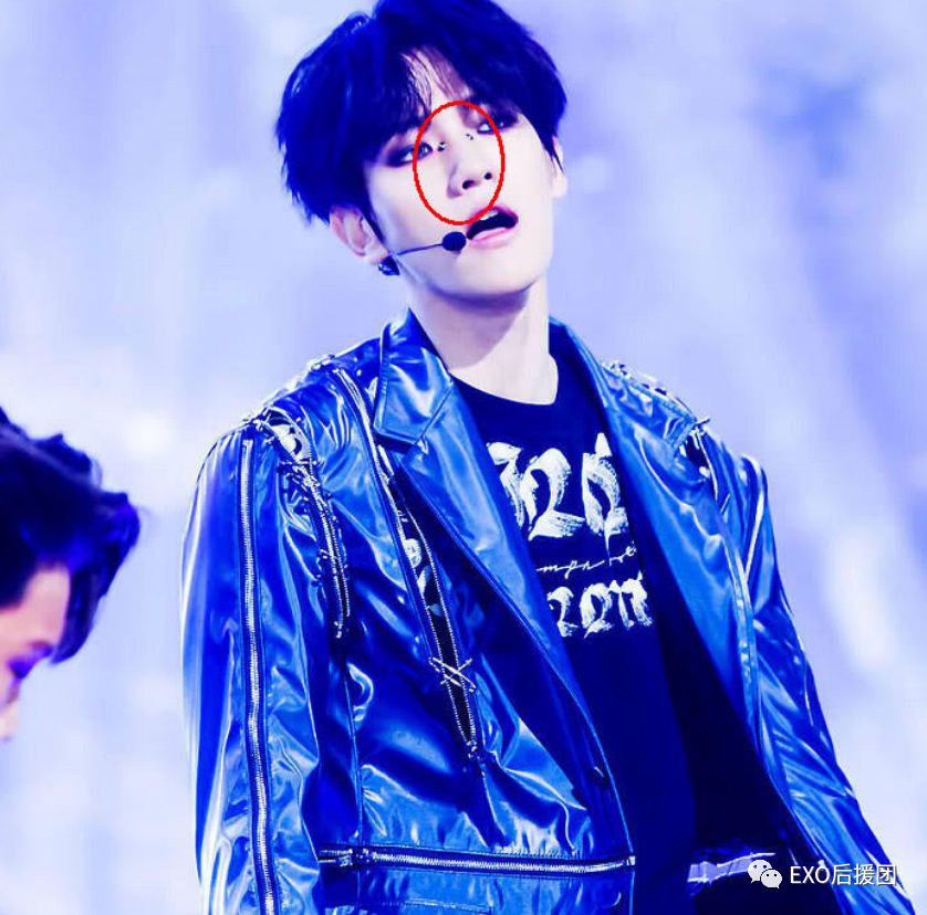 边伯贤之前的一次舞台妆,那真的是赚足了大家的眼球的呀, 这个舞台妆容其实也没有什么特别的, 因为伯贤每一次舞台上面都是浓妆, 浓眼线, 但是这一次是真的不一样了, 伯贤竟然在鼻子上面弄了一个这样的东西。正好在鼻梁的两侧, 一侧一个,看起来真的是很有魅力而且很神秘的样子!