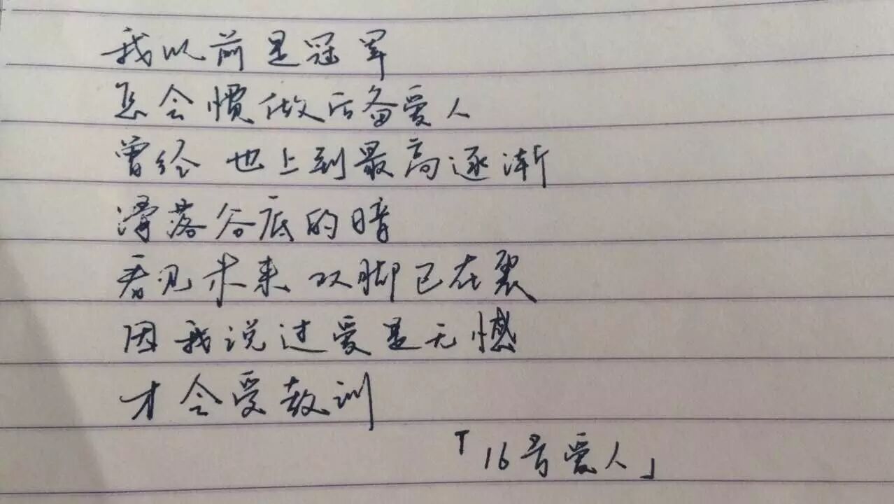 字迹怎么样不是最重要,重要是,看到大家的用心,对这首歌这句词的喜爱,这些都充斥在笔画间、背景里、在你写下这行字的心情里。