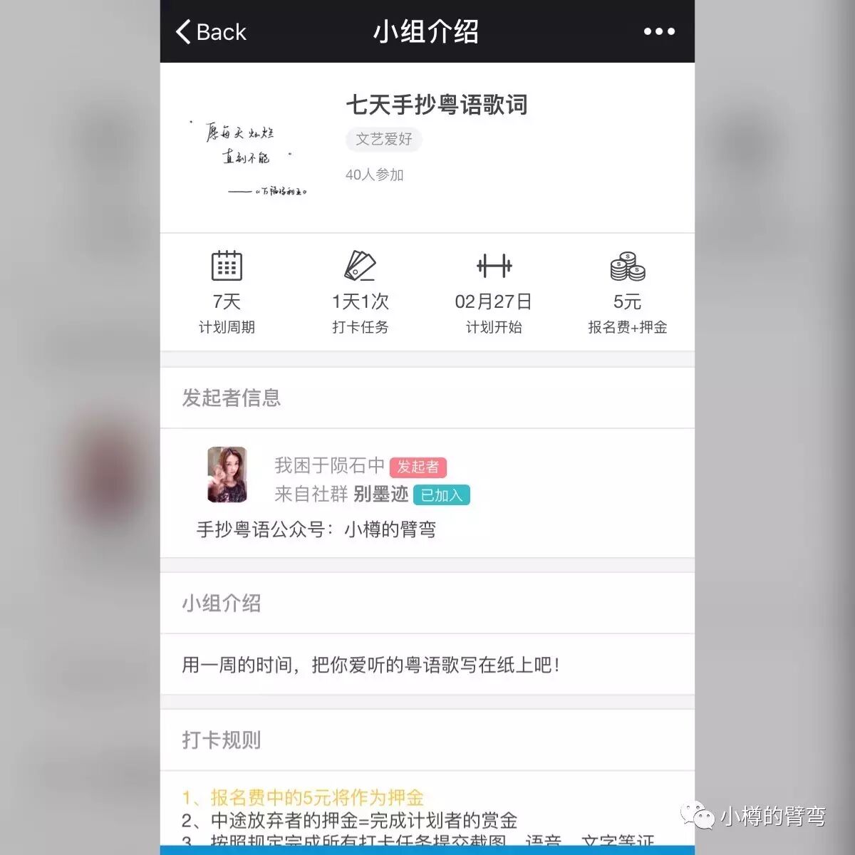 于是几天后,一个名叫【七天手抄粤语歌词】的小组诞生了,而明天,2017年2月27日,为期七天的活动,会正式开始。
