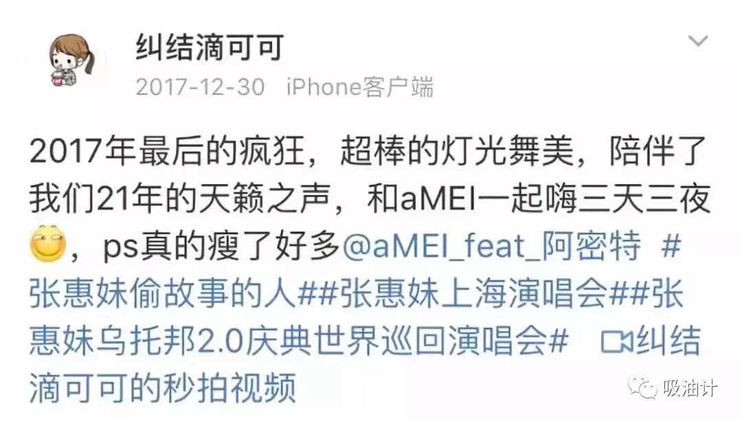 ▲去年跨年演唱会的时候,她的粉丝也都在惊叹A MEI的蜕变,“真的瘦了很多”。