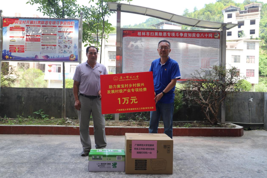 座谈会结束后,研究生工作部/研究生院党支部向黄宝村村委捐赠资金一万元以及相关物资,助力黄宝村乡村振兴工作的开展。随后,双方党支部举行支部挂联仪式。研究生工作部/研究生院党支部将以此次支部共建活动为契机,搭建和推进党建工作与业务工作相互融合,进一步推动乡村振兴、产业扶贫工作的走深走实。