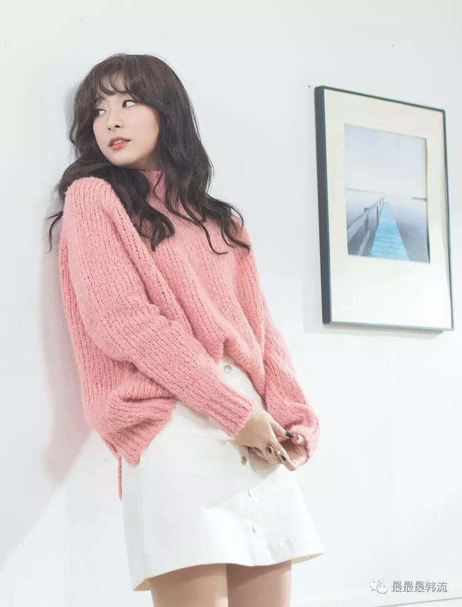 出道以来就以克里斯马形象示人的姜涩琪,这次穿起了粉红色。