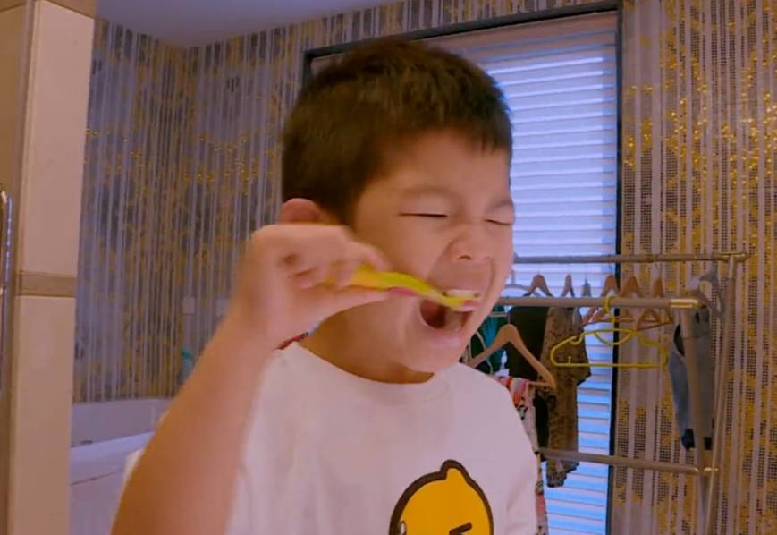 今年五岁的安吉完全一副小大人的模样,挺独立,会自己刷牙——