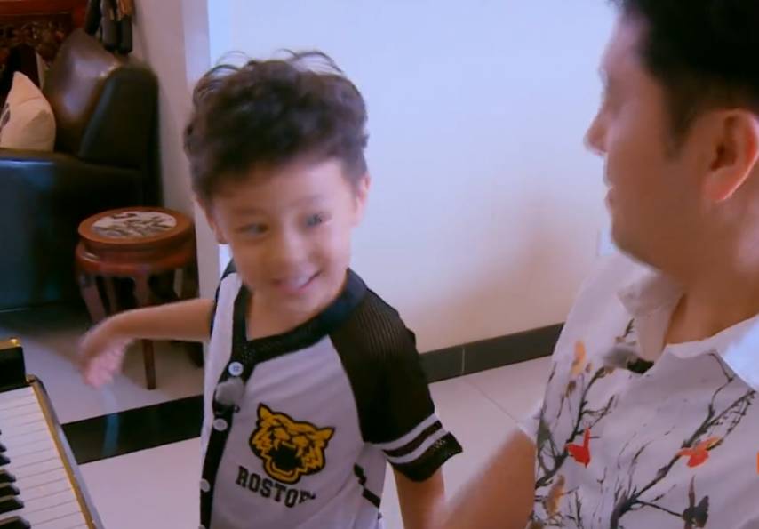 蔡轩正今年五岁,还是个淘气的年纪,上蹿下跳根本停不下来,而蔡国庆说“我很会哄他的,知道他想要什么。”