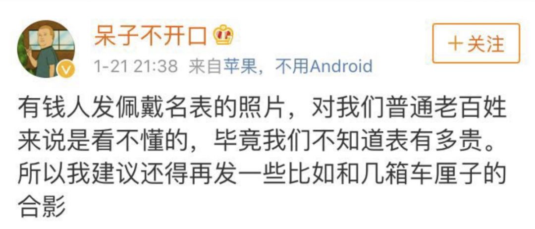有人调侃,咱们普通老百姓看不懂这些,没什么概念,再怎么秀也感觉不到多贵多有钱,不如发几箱车厘子的合照来的直接。