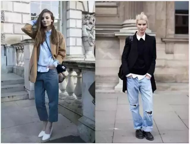 boyfriend风特别适合少女们,破洞牛仔宽松又能显瘦又减龄,搭配衬衫简直青春无敌▼