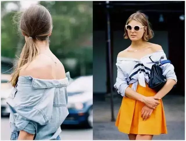 今年夏天的露肩火遍了大街小巷,露肩式的衬衫更添几分性感,秋天也能穿照样性感十足▼
