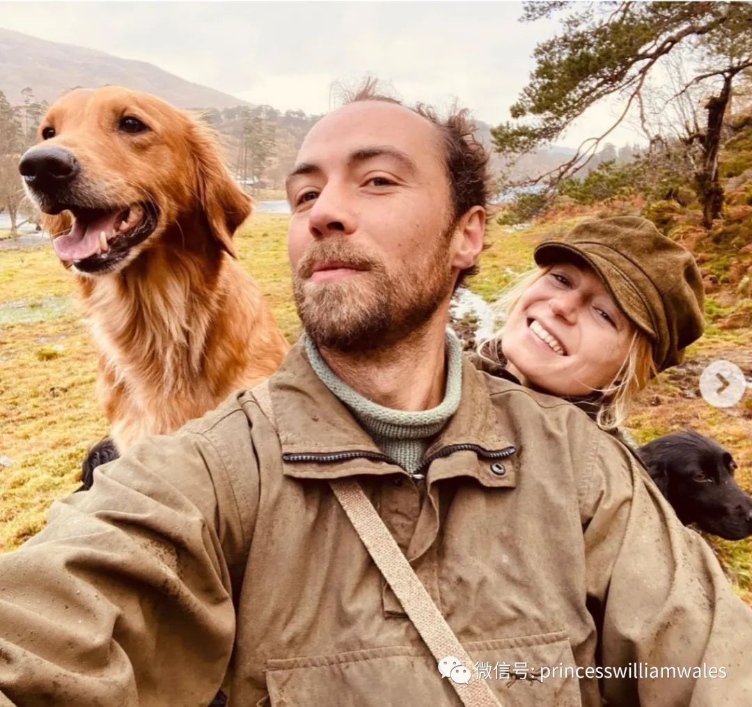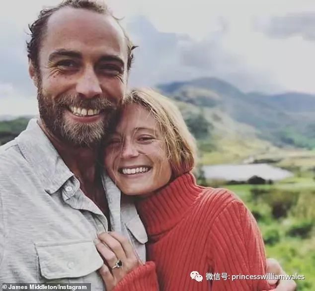 2019年10月,James同样在Instagram分享了他与Alizee的订婚照,照片拍摄于英格兰西北部的湖区,蓝宝石订婚戒指很醒目。