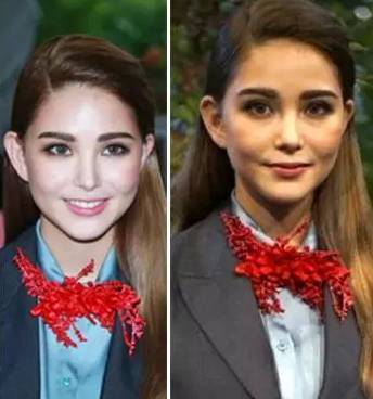 这一位自拍照每一张都精心PS,不过还是没逃过小编的火眼金睛。对比下图的被拍照片张馨予脸型其实很宽,面部轮廓线并不明显,五官和脸型不及范冰冰。皮肤又黑,表情纹还这么多,自拍与被拍年龄至少相差7岁。