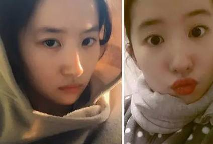 上图是刘亦菲的自拍照,女神自拍和PS功力都不到家,画面清新度不高,光线也不够好,但是自拍照还是很萌很美。下图被拍照片画风变得太快,笑容太惊悚,脸型居然也变宽了,女神的牙齿会不会太丑了。