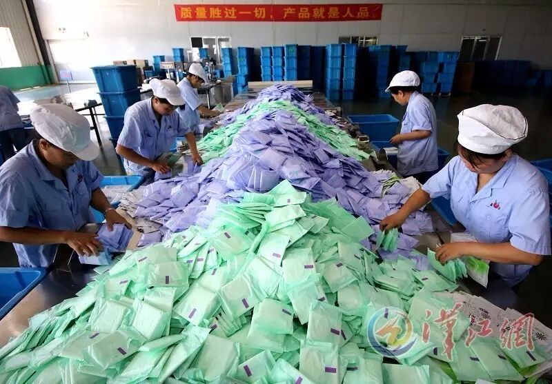 9号生产线负责人樊全燕说:“公司实行产品质量全员参与、全过程监控、全部工作内容控制的‘三全’管理,原材料采购、生产、销售过程层层把关,制订了年度质量目标和质量指标,全部纳入经济责任制考核内容,纳入评先、奖励、提升的考核条件,杜绝非优质产品流入市场。一般情况3个班次日生产卫生巾50多万片、尿不湿10万片、尿片16万片。”