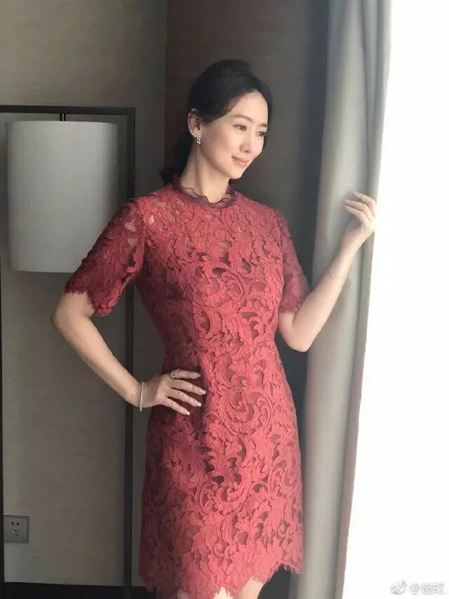 翁虹真的可以说是十足的冻龄女神了,现在的她和年轻时的她对比,好像一点都没有变,好像时光将她遗忘了一样,一袭砖红色的蕾丝连衣裙端庄优雅,将她的皮肤衬托得更加紧致细腻,蕾丝的质感本身就自带优雅感,翁虹这样的气质美人穿在身上气质满分。