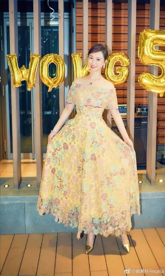 其实翁虹只要选对裙子的款式,也是挺减龄仙气的,一字肩的黄色碎花连衣裙,光看颜色就觉得充满了活力感,再加上金色的高跟鞋,百搭又时髦。