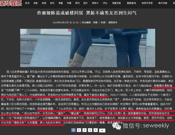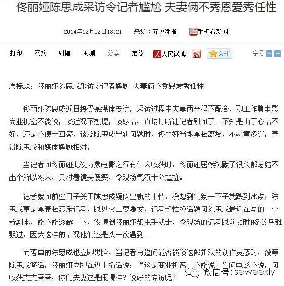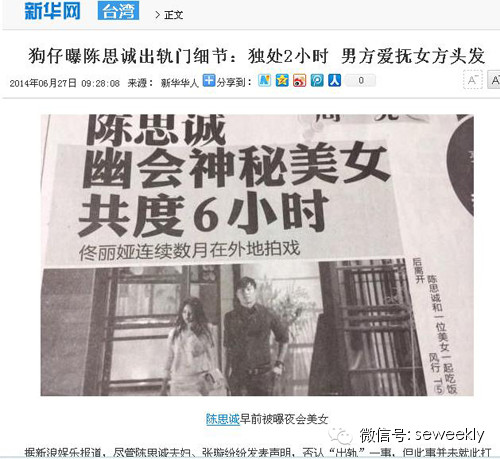 这段文字是否真实不得而知,不过今年《陈思成幽会神秘美女》的新闻,却实实在在炸开了锅,双方在英国接受采访面对记者抛出“出轨”问题,明显很抗拒很排斥。