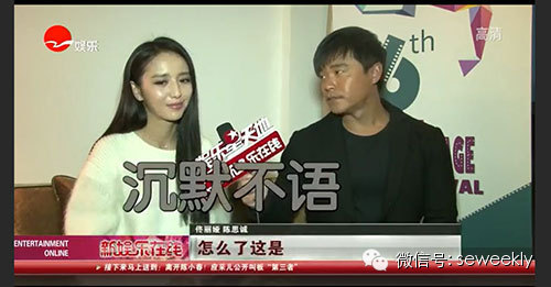 回到访谈画面,在采访中佟丽娅脑袋严重放空,回答问题磕磕绊绊,场面非常尴尬,只好不停向陈思成求救