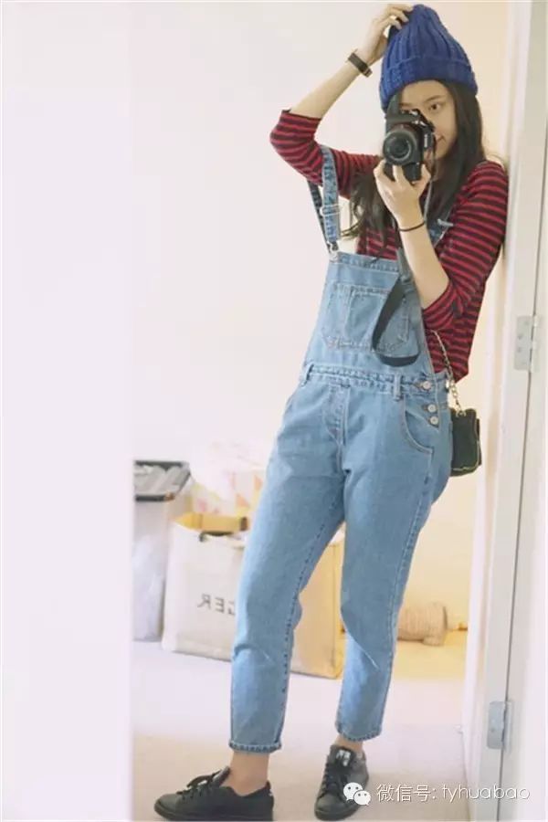 最减龄的还是基本款的背带裤,特别是浅色系的。