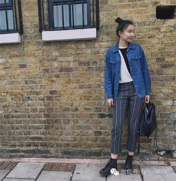 直筒的牛仔背带裤和丸子头是不是超可爱!但前提是要买到剪裁合身的款,松松垮垮或过紧都穿不出下图的效果。
