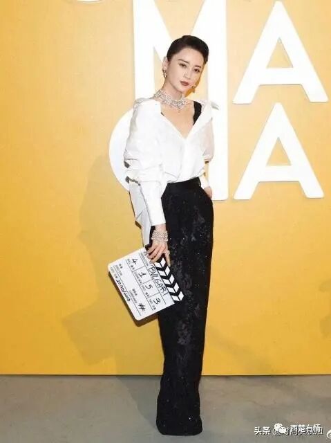 无袖的白色上衣如果手臂比较粗壮的话穿起来会有些虎背熊腰,好在蒋勤勤身材比较完美,轻松地hold住了这件衣服。外面叠穿的黑色西服套装,成套搭配就不用去考虑单品直接的排列组合,穿在身上就可以直接出门了。外套不穿反而直接披在肩膀上看上去就像自然了一件披风,让她看上去特别有女王范。
