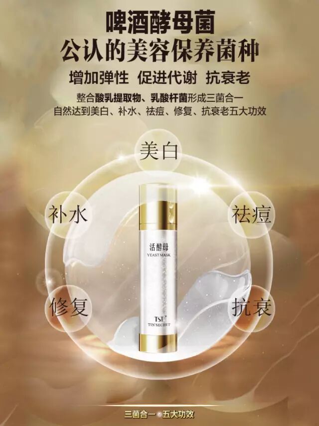 活酵母·靓颜赋活新生面膜乳是TST的王牌产品,20年淬炼经典风靡全球。蕴含100%酵母菌,它是一种“活”的营养物,含有极其丰富的活性物质,对肌肤有很好的修复与再生作用。
