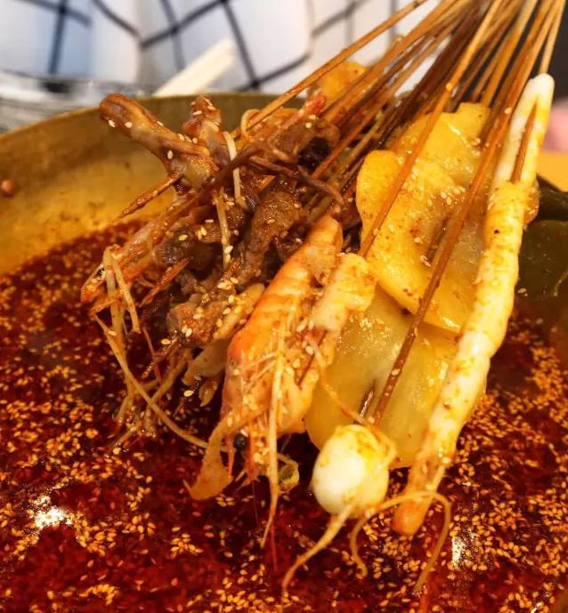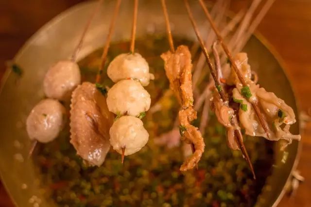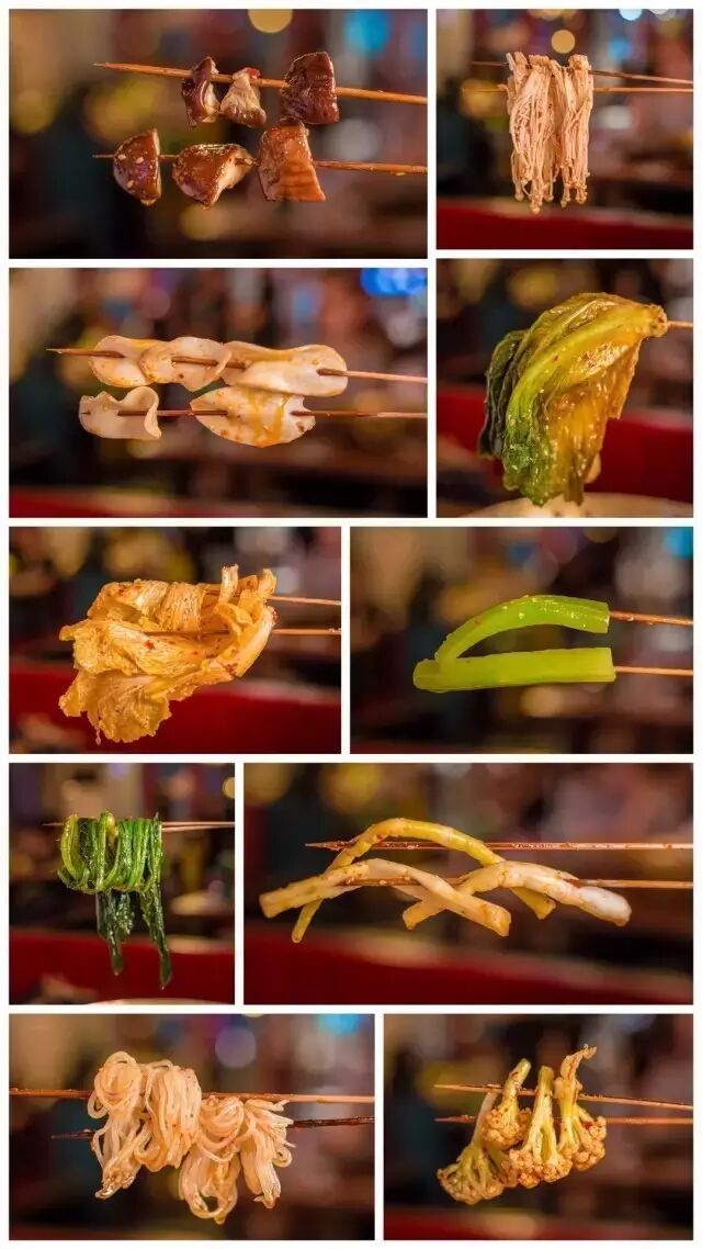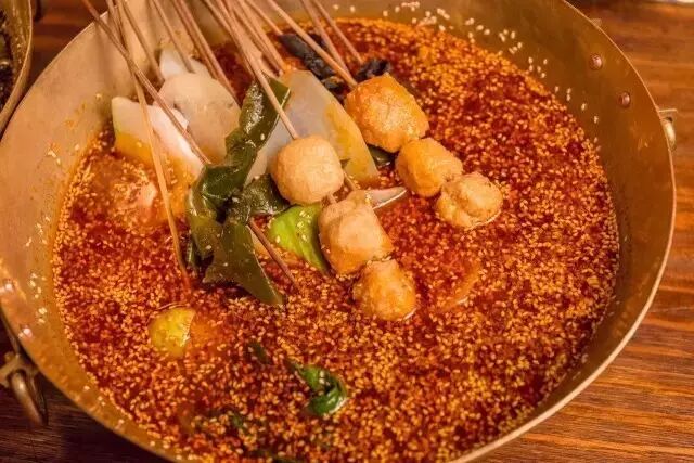 串串调料的油碟有7款,不能吃辣的推荐香油碟;喜欢吃辣,但是想要更香口的:干碟子;超级爱辣:重辣碟!调料准备好,就可以放开吃啦~