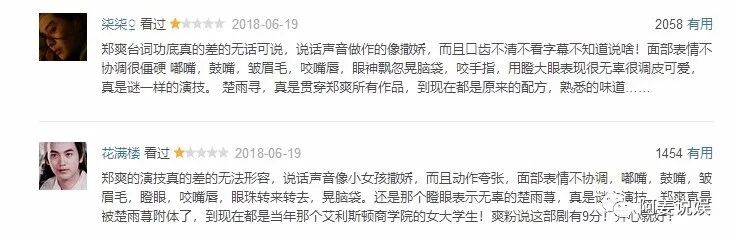 网友们吐槽的点无外乎是郑爽演技尴尬、剧情幼稚。