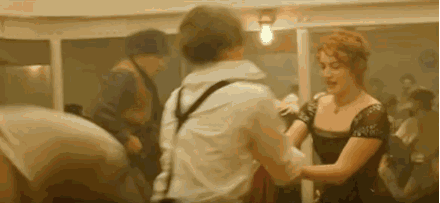 超级经典的一段跳舞场景,也是两个人最欢乐的时光,如果Jack没有把她带下去玩,也许Rose还不会意识到她有多喜欢这种无拘束的生活吧。