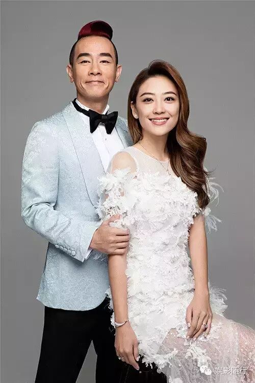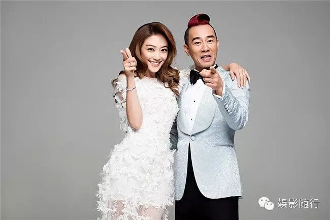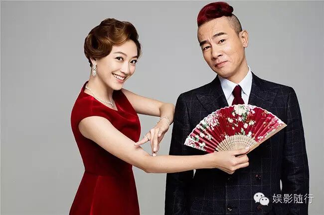 应采儿挽着陈小春,一个呆萌,一个耍酷,复古又登对。