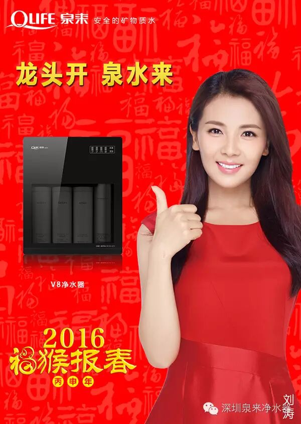 2016年泉来净水器推出多款矿物质水净水器,过滤技术也从反渗透发展到纳滤,坚持好水、耐用、安全、有科技感;泉来作为2015年消费者满意品牌,无论产品和形象都与刘涛完美契合。希望在接下来的日子里,我们能与刘涛给大家带来更多的惊喜。