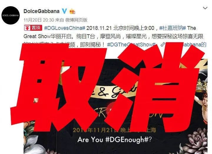 DG,滚出中国! 炸粪boys 港台女星 2018-11-21 18:04:25 670 创作不易,用心坚持,欢迎请BaGua喝几杯爱心咖啡!打赏并支持本文 打赏并删除本文 文:小鸭 图:网络不得不说,杜嘉班纳真是在作死。今天下午,有网友爆出知名品牌Dolce&Gabbana(杜嘉班纳)的设计师兼创始人Stefano Gabbana在ins上公然发表辱华言论。通过截图我们可以清晰地看到,在他嚣张的言辞中赫然出现了“country of 创作不易,用心坚持,欢迎请BaGua喝几杯爱心咖啡!打赏并支持本文 打赏并删除本文 感谢您的支持鼓励,我会继续努力的!文章地址:用户邮箱:打赏金额:USDT 请输入数字点击”去打赏“,即可进行打赏支持本文章哦 何韵诗 About the Author 炸粪boys 功能介绍:屎就真的只能放在心中了 Related Posts DG,滚出中国! 2018-11-21 18:04:25 发表评论