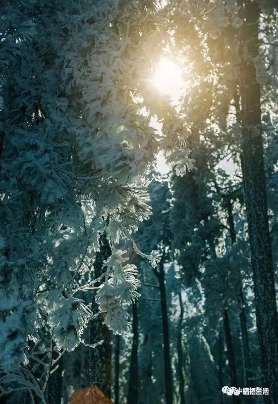 积雪的建筑和雾凇在阳光的照射下,犹如童话世界,展现出其“冻人”的风采。