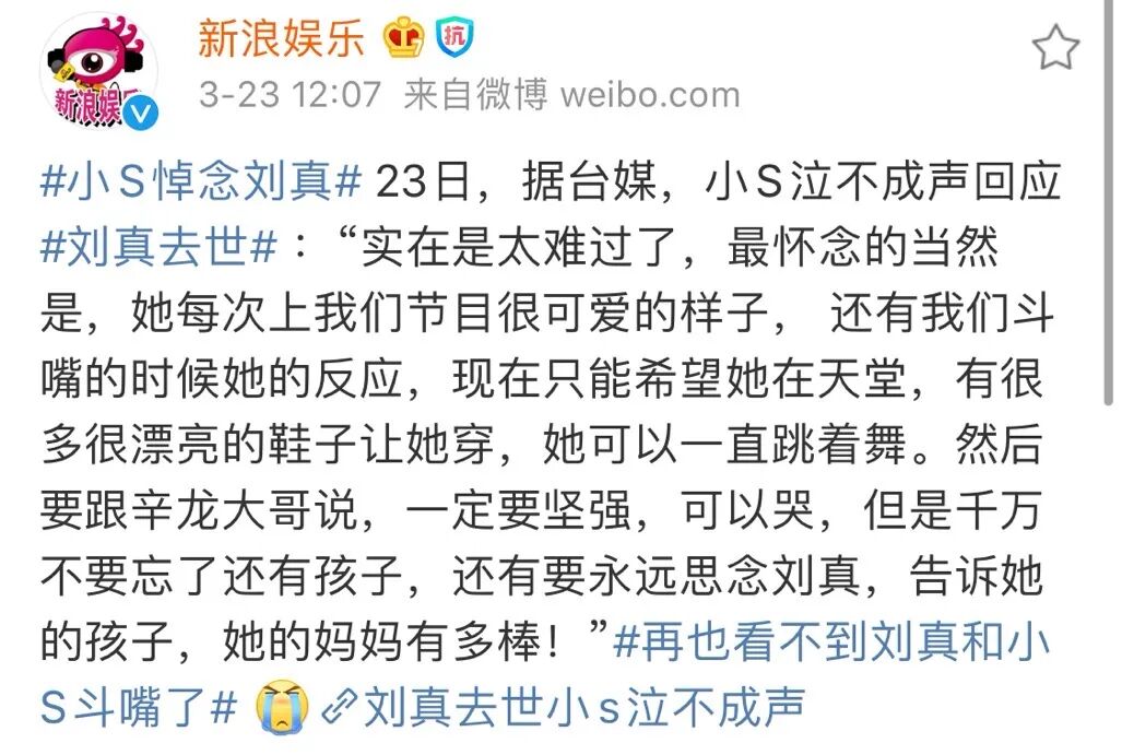 3月23日,据台媒消息,中国台湾女艺人刘真病逝,终年44岁。