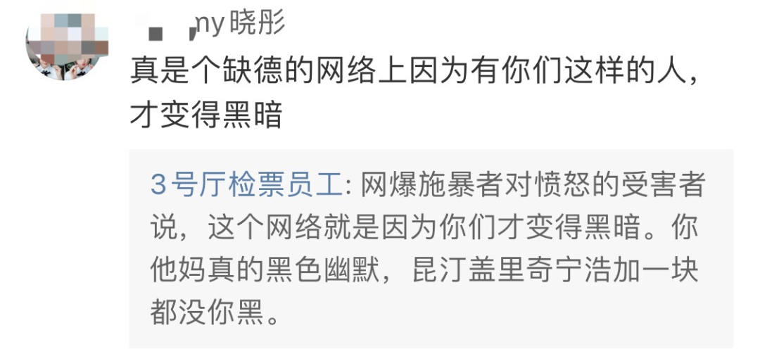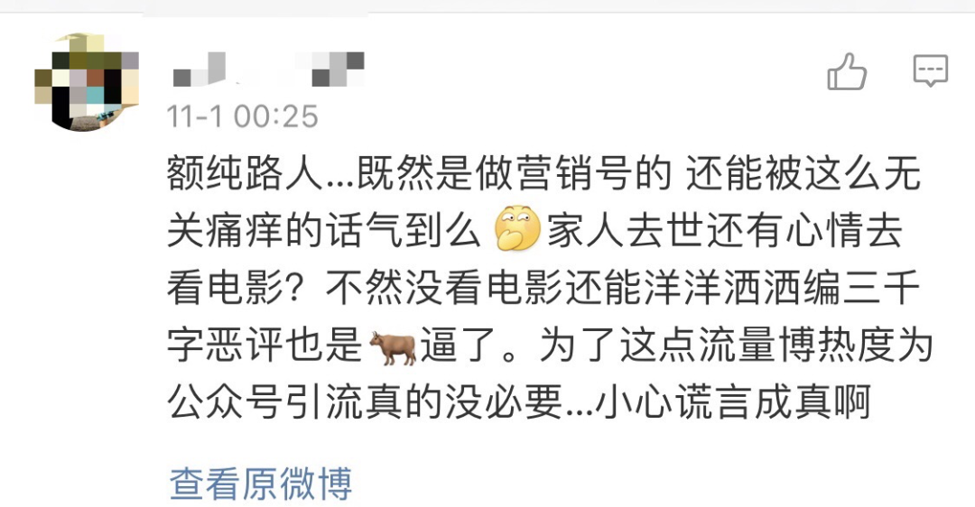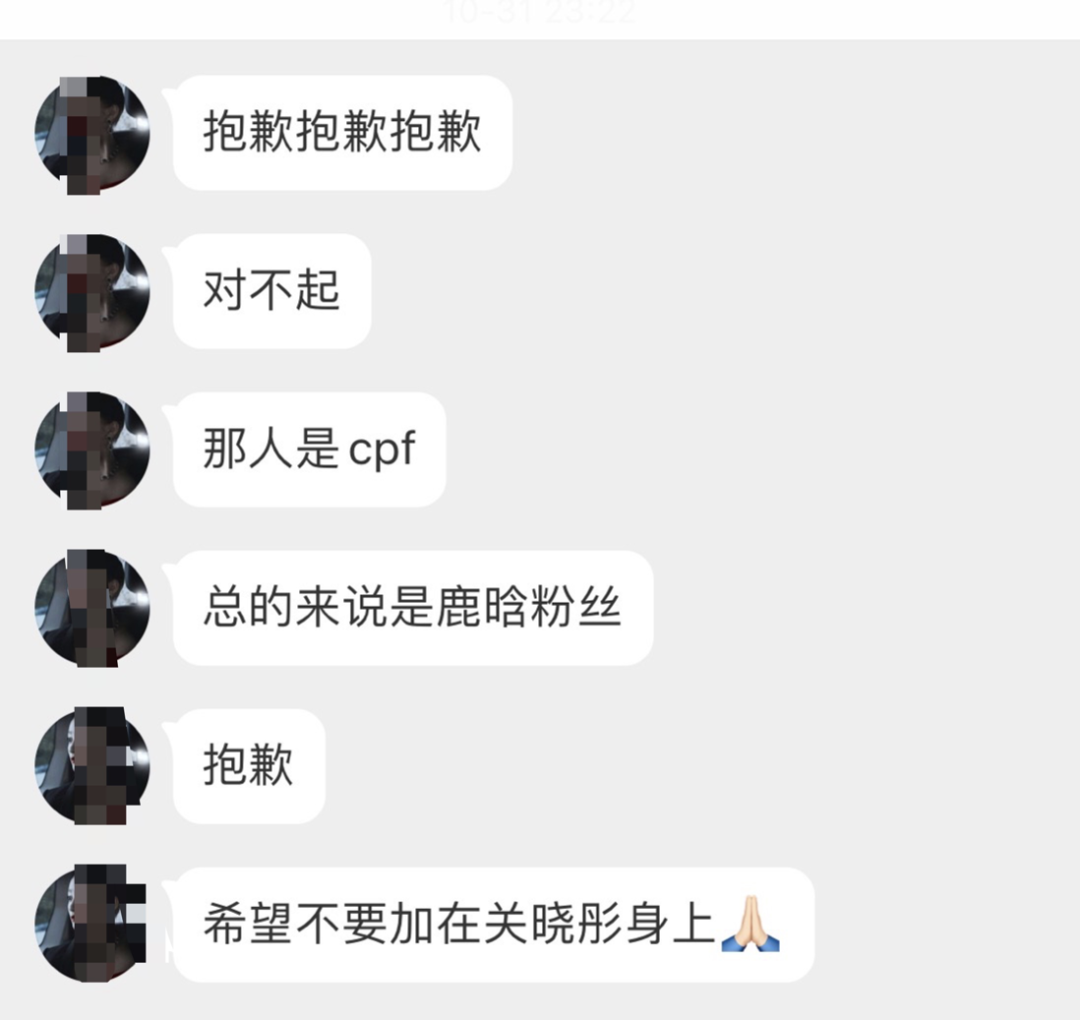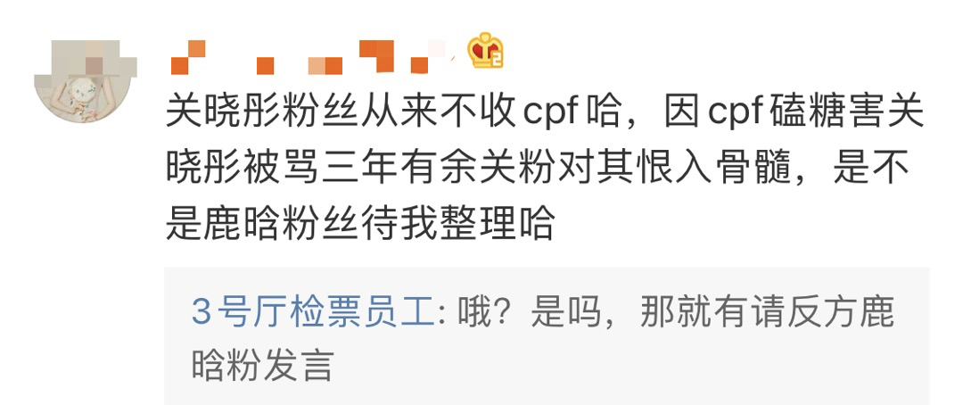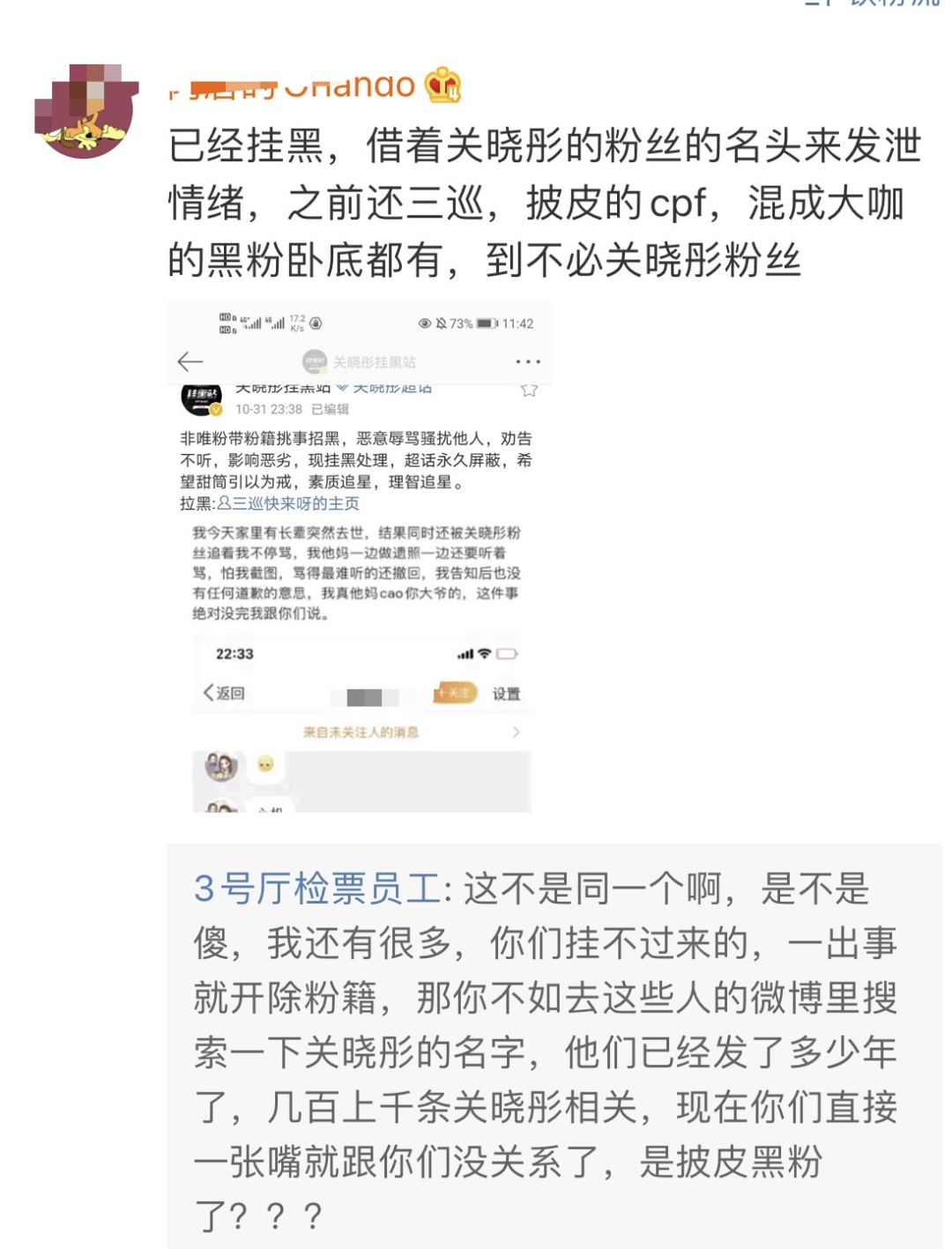 敬告关晓彤粉丝 3号厅检票员工 内地女星 2020-11-03 22:33:59 1082 创作不易,用心坚持,欢迎请BaGua喝几杯爱心咖啡!打赏并支持本文 打赏并删除本文 写在前面 我做电影媒体四年,和数不清的饭圈粉丝打过交道,我知道这里面有善也有恶,我们也经历过不少的语言暴力,自诩还算习惯了这些。 但这一次,我真的有些忍无可忍,到了要专门发推文回击的程度。 一「经过」 一切始于我们10月30日的一篇文和一条微博。 内容是对关晓彤和黄景瑜主演的电影《月半爱丽丝》的批评,这部电影目前在豆瓣的评分是3.8分,是今年评分倒数第二的院线电影,第一是《喜宝》,是那种毋庸置疑级别的大烂片。 这两条内容,全文都没有任何一句提及关晓彤和黄景瑜的表演问题,因为我们倾向于剧本和导演的问题更大,两位表演虽然也不好,但不算主要责任。 但我真的没想到,即使没有提到,两位主演的部分粉丝依旧无法容许这些批评的声音存在。 方法也很简单粗暴,控评和污蔑。当然,这些我都还挺常规的,我也习惯了,当时回骂几句也就罢了,还不至于专门写文伺候。让我生气的是后面的事情。 微博发出后的第二天,也就是11月1日,我家中突然有长辈去世,我从杭州赶回家奔丧。 同一天,我的私信开始陆陆续续收到关晓彤粉丝对我的辱骂。当时我在照相馆做遗照,手机里依旧登登登在跳出辱骂的私信,那个场景真的让我切身感觉到了一种饭圈失控状态的恐怖,和他们对普通人的一种侵犯。而且他们很聪明,辱骂完都会把骂的最难听的话撤回,估计是怕截图。 哪怕我明确告知了家中有人去世,希望能“放尊重点”,“道个歉这件事就算了”,但她们也依旧没有任何认错的意思,至今都没有理会我。 相反,哪怕是在我把这件事发出微博之后,我都没有得到道歉,只是换来了更多的辱骂。 有觉得我亲人死的不够,继续骂我死妈的, 有辱骂一键三连的(这位在事情闹大后来找我道歉了,但我并不打算接受) 有我也不知道是真路人还是装路人的,颠倒黑白,说我编造故事的。有秉承受害者有罪论的。有倒打一耙的。有让我多反省一下自己的。有我也听不懂她在说什么的。你们骂我我都能习惯,但骂我家人干什么呢?还是在我明确说了亲人去世的时候。但这些还不是我生气的重点,后续更可笑。当我连续发微博开始反击的时候,其他关晓彤粉丝估计是终于意识到我是做什么的,事情有多严重了。离奇的是,她们意识到事态严重的第一反应,不是来向我表示歉意,而是忙着推卸责任,忙着开除粉籍。因为那个粉丝还同时喜欢鹿晗,所以把所有的责任都推到鹿晗粉丝的身上,让我去对准鹿晗“轰”。仅有的几个私信道歉还都是为了告诉我,我挂出来的那个粉丝其实还喜欢鹿晗,是CP粉,让我别怪关晓彤。还有不少涌来我微博底下,拼命说服我,这是鹿晗粉丝干的,别放过鹿晗。我当时都看傻了。你们是自己在饭圈过家家过太久了,不知道外面都已经四个现代化建设全面小康了是吧?2020年了各位。你因为关晓彤骂我,我骂回去,还得先考虑你除了这个偶像是不是还有别的偶像,到底要骂哪个?我需要管你这个关晓彤粉丝,除了喜欢关晓彤还喜欢谁吗?你们是自己傻逼,还是当我傻逼?骂我的也不止她一个,你们这么骗自己有什么用呢?我还特意在她们挂黑的那位的微博搜索关晓彤的名字,录了个屏给大家感受一下,这大概就是三分之一,根本拉不到底。那位粉丝也是真的可怜,一个小女生这几年替关晓彤发了上千条应援微博,光《月半爱丽丝》就买了7张电影票支持,现在出事了立刻就打入死牢,和关晓彤无关,是批皮黑粉,是鹿晗那边派过来的卧底CP粉。还来拼命煽动我去骂鹿晗。怎么着?你们关晓彤的饭圈现在是热衷演绎什么叫「伴君如伴虎」了吗。今日共饮,明日杀头,有用的时候当牲口用,没用的时候当牲口宰。这就是你们家饭圈本质啊?领略了哈。但我真得给你们说,搁电影里面,你们就是那种最下贱的反派,编剧这么写都会被我们骂“坏的太脸谱”的那种反派。要点脸,真的。二「粉丝行为,偶像买单」整个事情的经过也差不多讲完了,接下去是今晚的第二个部分,也就是大家最期待的「粉丝行为,偶像买单」部分。其实也不是我硬要上升你们正主的,是最开始好多关晓彤粉丝强烈要求的——ta们一直说:你就是故意黑关晓彤。我说:我冤枉啊,我写文都没提关晓彤一句。ta们:你就是在黑关晓彤。我:行吧,那我黑一下吧。而且挺不巧的,我别的什么都不会,就是懂点电影啊,表演啊什么的,我就只能展开聊聊关小姐在这部《月半爱丽丝》中,演得到底有多烂吧。最根本上,是选角的问题。 她饰演的晓曦,是一个因为肥胖,自小就被欺负,长大后也经历了大量社会歧视,生性自卑的女孩子。 但是今天还在以#我是在逃格格#上热搜的关晓彤,很显然是没有这种角色体悟的。 我们前天的推文里就聊到过,演员要先找到自己合适的定位,做好基本,再去尝试挑战,演员首先要自知。这也是为什么她在《二十不惑》里演一个高傲的女神不会出戏,但是在这里演一个自卑的胖子却各种露怯。 关晓彤这样的演员因为选择权的泛滥,导致她对自我的定位不清,没做到自知,便急于挑战,说白了,没有自知之明。 电影里这种的体现比比皆是,最明显的就是她对自卑和害羞的表演理解是混淆的。 她面对每一次遇到歧视的处理都是低头,轻咬嘴唇,但这其实并不是自卑还是害羞。