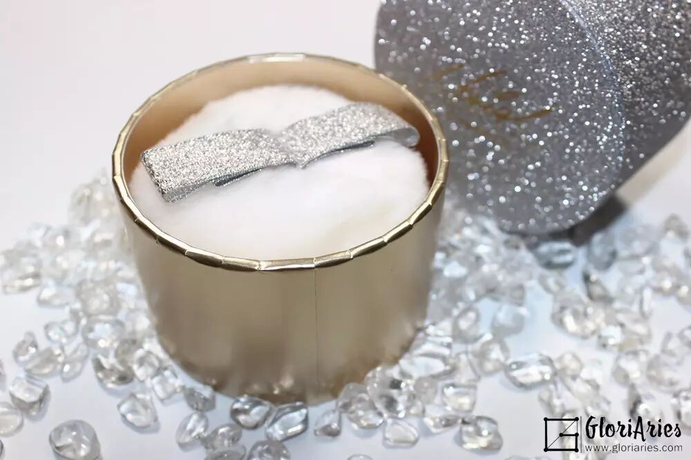 内里是一个蓬蓬松松的长毛粉扑,银色蝴蝶结
