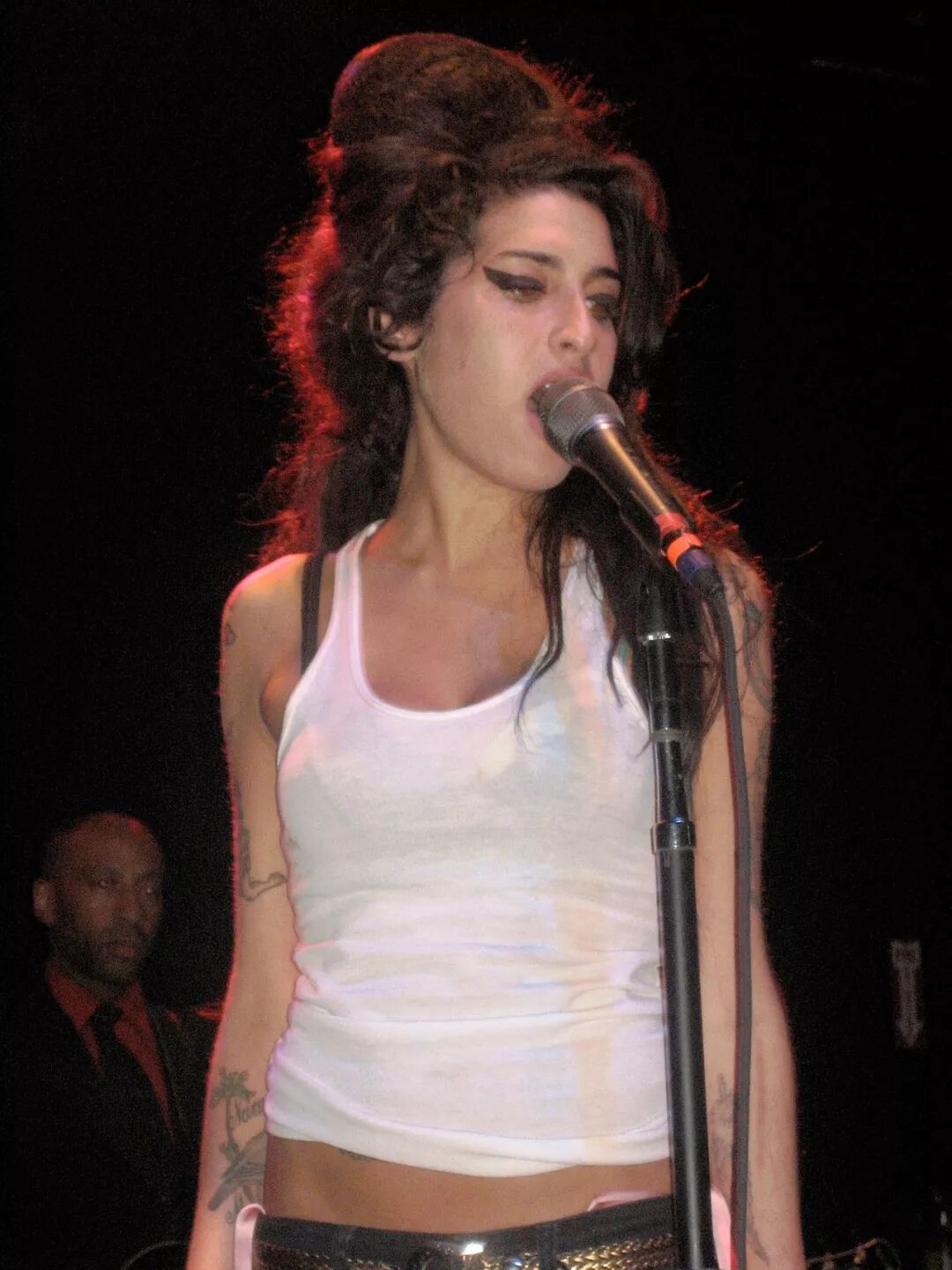 Amy Winehouse:一名灵魂歌者,在她27的那一年,生命末端被酒精画上了并不圆满的句号。她有着非大众可以接受的装扮,身体上无序排列的文身,浓重上挑的眼线,总是高耸凌乱的头发,但是浑身却散发着野性与率真,迷恋毒品、酗酒成性已然是她身上撕不掉的标签,被称为“毒后”也无可奈何。