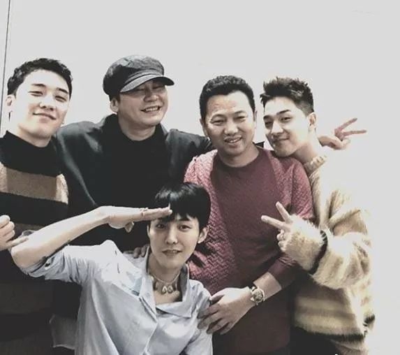 YG娱乐代表梁铉锡也上传了与权志龙、太阳、胜利的合照