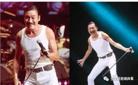 然后谭咏麟带着温拿乐队也一起上台合唱,看到梁家辉和钟镇涛,还和穿着一身摇滚派张家辉开玩笑说他撞脸四哥谢贤,别说,仔细看起来还真有点像。就在这个演唱会上,他们几个好友就像是在玩乐、唱歌,简直就是一个私人聚会,真的是太棒了。