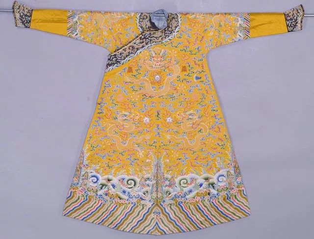 (《明黄色缎绣五彩祥云金龙十二章纹夹龙袍》)