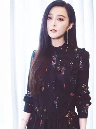 ▲范冰冰身穿Erdem × H&M黑色印花连衣裙,精致的褶皱花边装饰让冰冰尽显复古优雅气质。