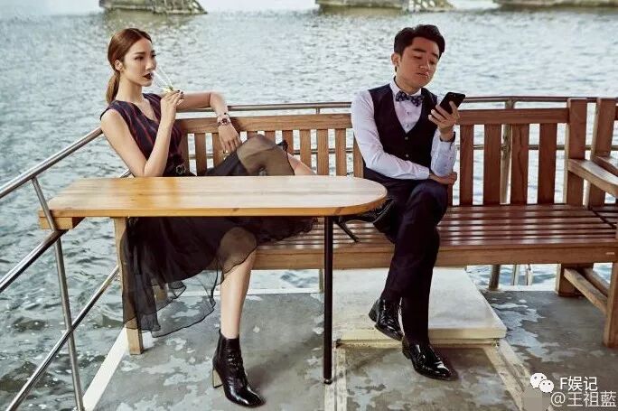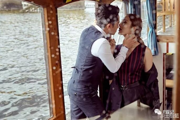 穿着正装的王祖蓝用手摸着李亚男的脖子,至于李亚男就用一只手指指着王祖蓝的下巴,看起来很有画面感。