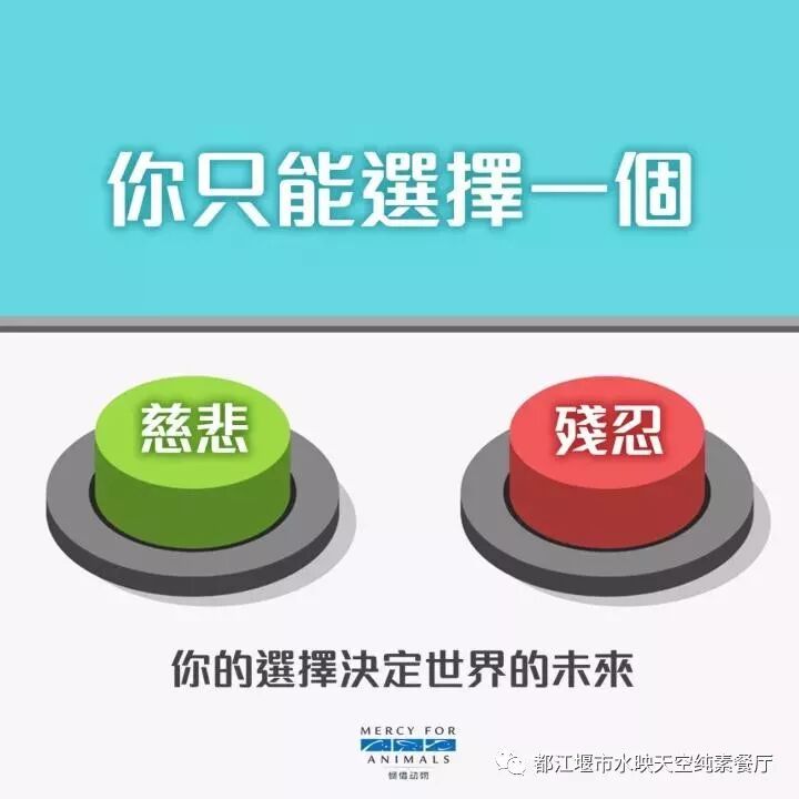 成千上万的动物,在恶劣的饲养环境里成长,然后被惨无人道地屠杀,只要人类继续对肉继续有所需求!如果您选择素食,就可以停止这一切残酷的行为,为了我们自己,也为了我们的下一代,请大家选择素食!