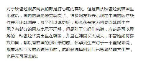 秋瓷炫在参加综艺的时候,终于是道出了实情,原来在韩国生的越多,国家给的补贴和福利也就越多。看来福利的“诱惑”很大呀,就连明星也抵挡不住。当然,这生孩子是一回事,这入国籍又是另一回事了,在中国是不承认双国籍的,所以要是入了韩国国籍,再想回国入籍就难了。于晓光对此表示:“韩国那边条件好,政府鼓励生育,可以多生几个,还有很多补助!”这话一出,更是引起热议。先不说哪边条件好,于晓光身为明星,难道还缺国家的补助?再说中国已经开放二胎,鼓励生育了,于晓光的话让很多网友很生气。