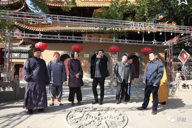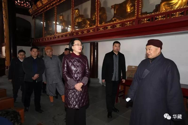 2018年2月13日下午,昆山市市委常委、统战部金铭部长来到昆山华藏寺视察春节敬香安全工作。随行陪同有昆山市市委统战部副部长、市民族宗教事务局许征局长,市民族宗教事务局陆明副局长,市委统战部办公室朱文琦主任。