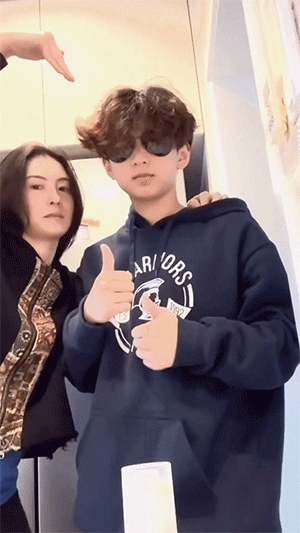 近日,张柏芝晒出一段和二儿子同框比心的视频。