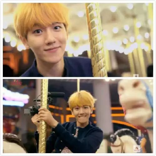 视频中,伯贤拿著摄影机自拍,并走向旋转木马,他边拍边说:「还在幻想著电视剧中骑著白马的王子吗?那就是我。能跟我一起骑浪漫的木马吗?跟我一起坐吧。」说完还露出了可爱的表情。之后还可以看到他和LAY坐在木马上玩得愉快的情景。