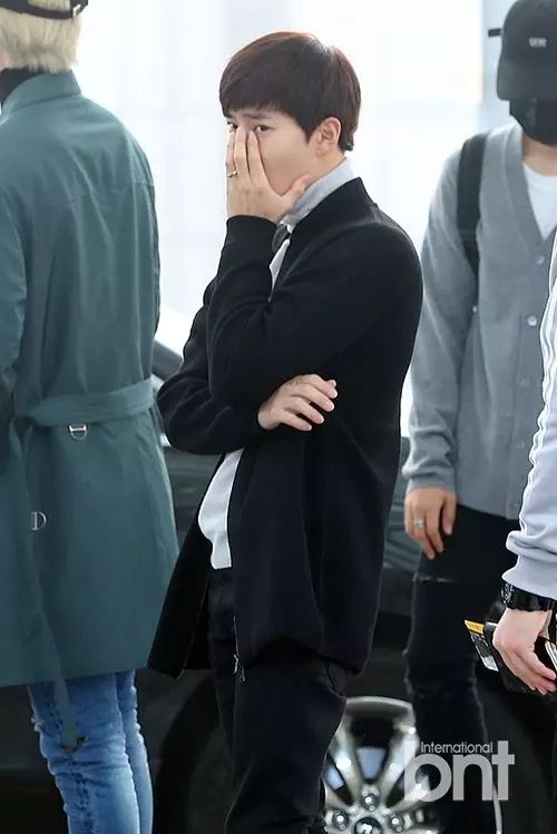 16日上午,韩国男子组合EXO成员SUHO、伯贤、灿烈、KAI、世勋现身仁川机场,出发前往广州举行演唱会 "EXO PLANET THE EXO LuXion"