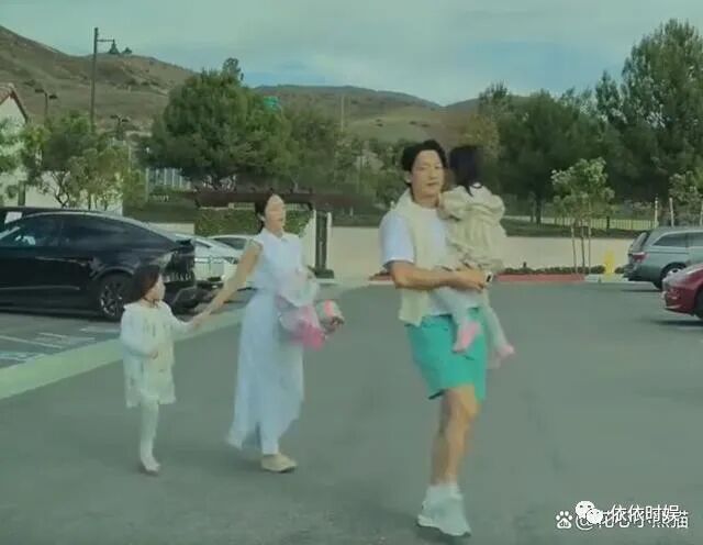 据网友描述,当时Rain和金泰熙正在接孩子放学。照片中,Rain怀着满满的父爱抱着两位女儿,而金泰熙则用丰沛的母爱拥抱着她们的长女。整个家庭穿着时尚,金泰熙身着简约的白色连衣裙,流露出优雅的气质,而Rain则穿着清新明亮的绿色短裤。